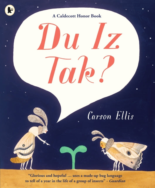 Readers are invited to imagine the dramatic possibilities to be found in a garden, where insects talk their own mysterious language. The book is written in this invented language, readers soon find ourselves speaking "Bug" ... even if they don't know what it meas. Du iz tak? What is that?